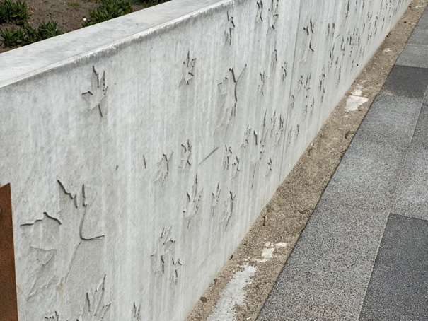 Hier werden die Details vergrößert. Wir sehen schöne Blätter, die in den Beton eingebettet sind. Die Details werden durch die Form in den Beton gedruckt. Die Blätter sind nur ein Beispiel für die vielen Möglichkeiten.